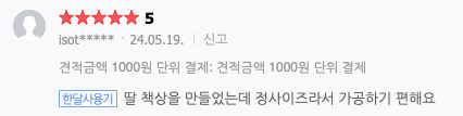 고객님께서는 딸을 위한 독서실 책상을 만들기 위해 목재재단 서비스를 이용하셨습니다. 정밀하게 재단된 목재 덕분에 DIY 작업이 훨씬 수월했으며, 결과물에 매우 만족하셨다고 합니다. 실제로 한 달 동안 사용해보신 후 재구매까지 하셨습니다.