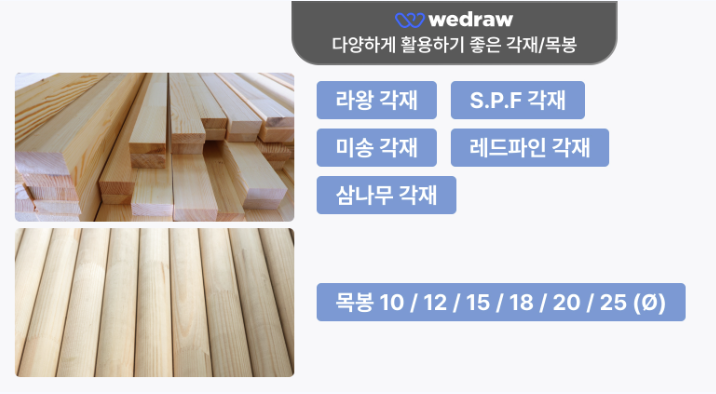 위드로우의 DIY 목재재단 서비스는 고객님의 창의적 프로젝트를 도와드리는 최고의 파트너입니다. 정확한 재단과 다양한 옵션을 통해 고객님만의 독창적인 작품을 쉽게 만들 수 있도록 도와드립니다.